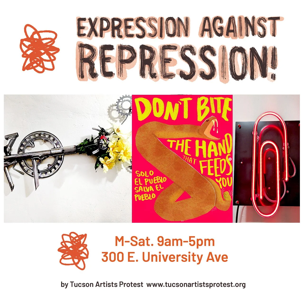 Inspired by the Roots of Resistance Raices Taller Gallery Taller, a group of us began organizing around the idea of art as protest. The result is Tucson Artists Protest, an informal coalition of artists using exhibits, workshops, and street actions—like clown activism—to respond to the current moment. We’re launching with a show at The Historic Y in Tucson Oct 19th, 4:30-7PM.